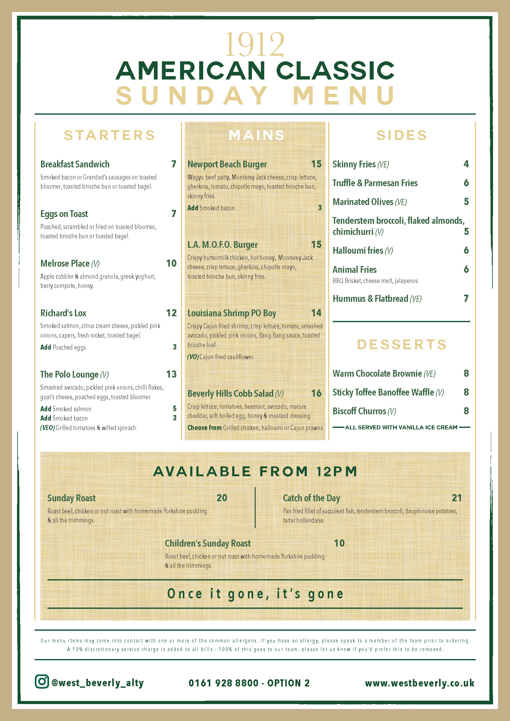 Gather your friends and family, book a table, and make Sunday the highlight of your week at West Beverly.